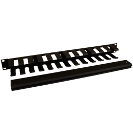 Umožňuje horizontálne menežovať dvojnásobný počet patch káblov v porovnaní so štandardným držiakom, vhodný najmä pri použití HD patch panelov s hustotou 48 portov na 1U, sada skrutiek M6 s plávajúcimi maticami (4 ks), Výška panelu: 1U (44,5 mm), Šírka panelu: 19" (482,6 mm), Výška oka: 42 mm, Hĺbka oka: 73 mm, Farba: čierna RAL9005, Povrch: štruktúrovaný matný