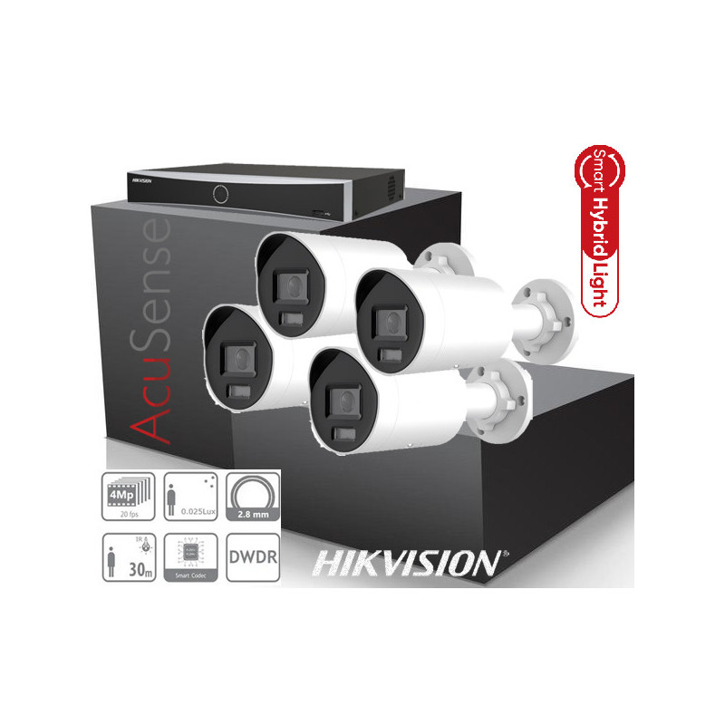 Kamerovy system do domu, do firmy - obsah setu: NVR HIKVISION DS 7604NXI-K1/4P + 4x 4MP IP kamera s IR prisvietením HIKVISION AcuSense+Inteligentné hybridné svetlo: pokročilá technológia s veľkým dosahom DS-2CD2043G2-LI2U-(2,8mm).