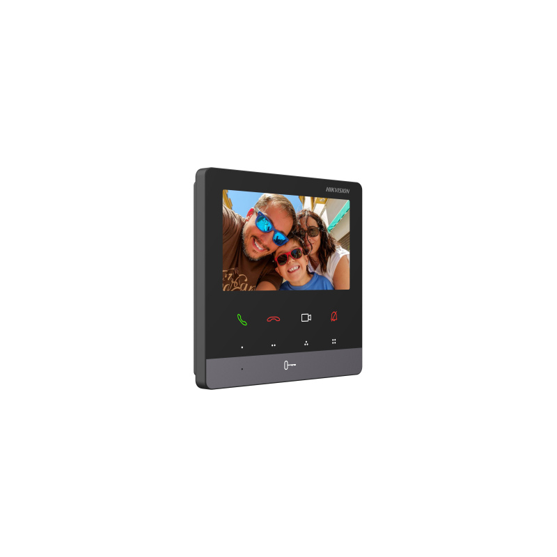 HIKVISION DS-KH6100-E1/Alarm - vnútorná jednotka, Audio video vnútorná jednotka, farebný nedotykový displej s rozlíšením 480 × 272 , ovládanie pomocou 9 dotykových tlačidiel (4 nastaviteľné), možnosť pripojenia 16 zariadení