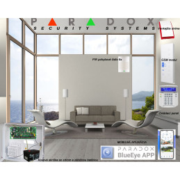 Alarm drôtový, kompletný set smart alarmu, zabezpečovací systém EZS, Paradox ( bez kabeláže!) pre objekty 10 miestnosti - (môže byť aj samoinštalačný balík, inštalácia len elektrotechnikom).