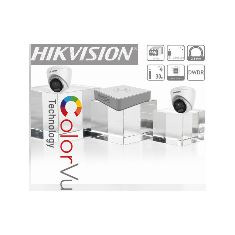 Kamerovy system do domu, do firmy - obsah setu: HIKVISION IP NVR, IDS7104NI-Q1/4P(D) +zabudovaný PoE Switch, (HDD nie je súčasťou balenia) + 2x 4MP IP kamera s IR prisvietením HIKVISION ColorVu DS-2CD1347G2H-LIU-4MP(2,8mm), 4MP UHD rozlíšenie.