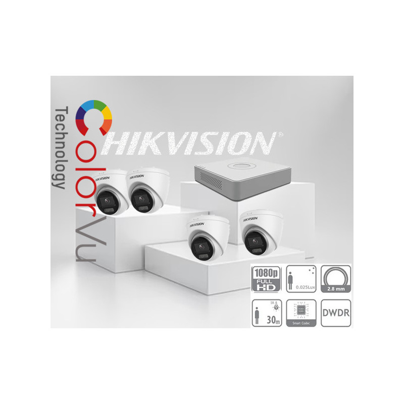 Kamerový set NVR s Poe-+4x IP kamera-HIKVISION-DS-2CD1327G0-L, 4MP/UHD/2K, ColorVu+AcuSense, Smart hybrid IR30m, kompletný CCTV kamerový systém ColorVu s 4 IP kamerami 2MP, FULL HD rozlíšenie - samoinštalačný balík.